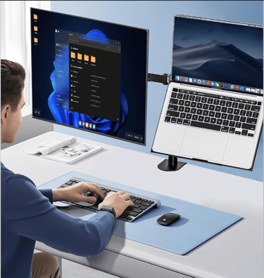 Você termina o dia com dor no pescoço ou sentindo que sua mesa está um caos? O problema pode não ser o seu trabalho, mas como suas telas estão posicionadas. Ter um monitor de um lado e o notebook do outro, ambos em alturas diferentes, força sua cervical e cansa sua visão mais rápido.
